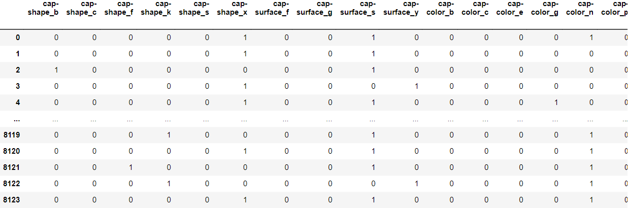 Index(['cap-shape_b', 'cap-shape_c', 'cap-shape_f', 'cap-shape_k',