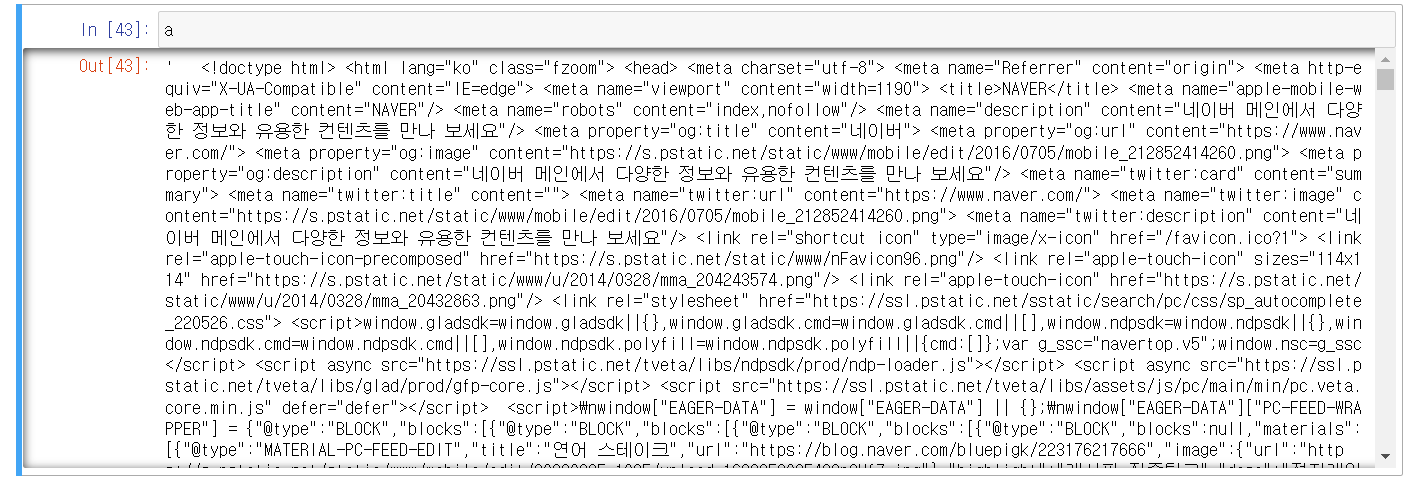 # 1. req를 통해서 네이버 페이지 정보를 요청