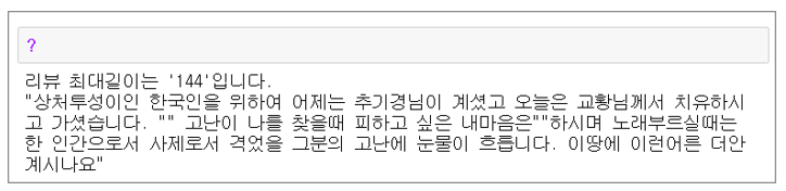 리뷰길이 최대 값/리뷰 내용 출력하기