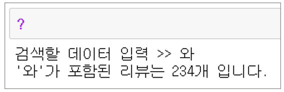 print("'{}'가 포함된 리뷰는 {}개 입니다.".format(search, reCnt))