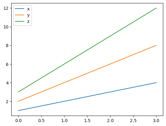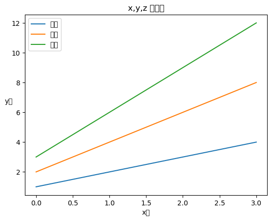plt.title('x,y,z 그래프')