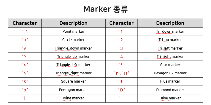 # 마커 선 색상 - markeredgecolor -> mec