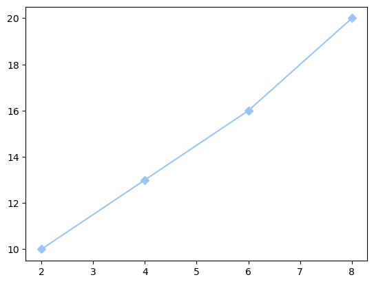 plt.plot(x, y, color = '#9AC5F4', marker='D')